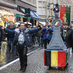2022Het beeld van Manneke Pis in Brussel wordt ondersteund door de Orde van de Vrienden van Manneke Pis. Hier een portret van een lid van de Orde tijdens een bijeenkomst bij het beeld van Manneke Pis