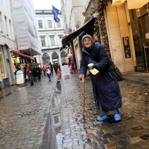 2022In Brussel leven veel mensen op straat. Ze proberen van voorbijgangers wat geld te vragen.